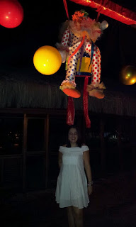 Logo depois à noite, foi a festa no hotel Jatiúca, com o tema O Circo, linda demais, toda ornamentada, uma banda maravilhosa, comida e bebida à vontade, opaaa, calma gente, eu me controlei no jantar, fiquei no bacalhau e no salmão com arroz e salada. Tomei duas taças de vinho e brindei o ano novo com champanhe. Maaaas, na hora da sobremesa não tive como resistir, uma mesa imensa de doces, pelo menos tentei não exagerar, foi uma fatia fina de torta de limão e uma outra que não sabia exatamente do que era, só sei que estava delicioso. Fazer o quê, também não sou de ferro. Mas, para queimar, dancei muuuito ao som da banda que tocou de tudo, anos 60, 80, sertanejo, Shakira, música baiana, tudo que imaginar, aproveitei então pra suar bastante. Menos mal, não acham?